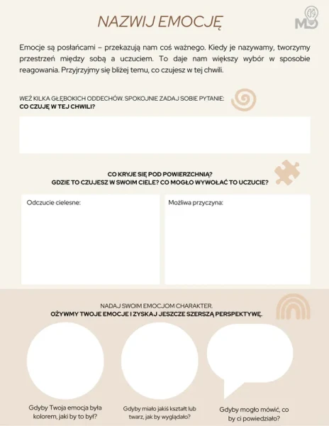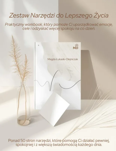 50+ stron praktycznych kart pracy, dzięki którym uporządkujesz emocje, myśli i cele.